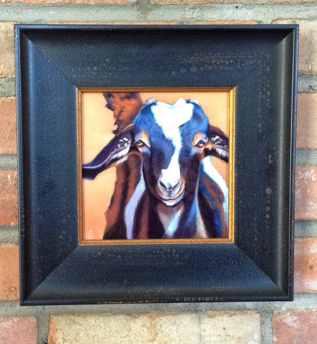 This painting is a 6x6 soft pastel and is framed in a gorgeous plein air style frame from Randy Higbee Gallery (kingofframe.com). The glass is Conservation Clear, and all acid free materials were used in framing.